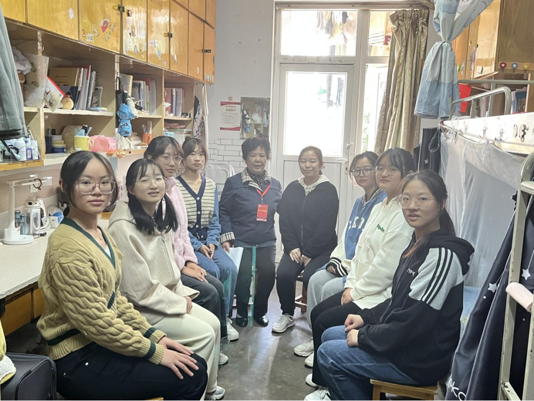 为帮助大学生尽快适应校园生活,了解学校发展脉络,以更好的精神面貌迎接大学生活,11月5日下午,校关工委退休教师王光明、王桂荣走进化工学院2022级新生宿舍,与新生代表们促膝谈心,2022级辅导员参加了座谈。