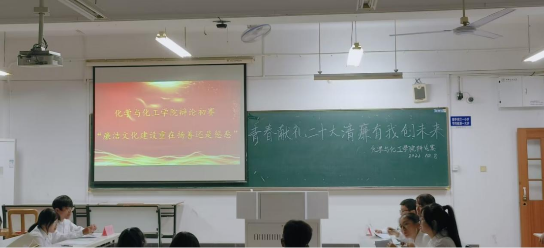 为积极引导青年大学生扣好“清廉人生”第一粒扣子,以青春行动喜迎党的二十大胜利召开。2022年10月8日晚,化工学院在教三北602教室,举办了以“青春献礼二十大 清廉有我创未来”为主题的辩论赛院级初赛。院党委副书记、副院长、纪委书记冀秀芝、院团委书记唐志强、2022级辅导员及学生代表参加此次活动。