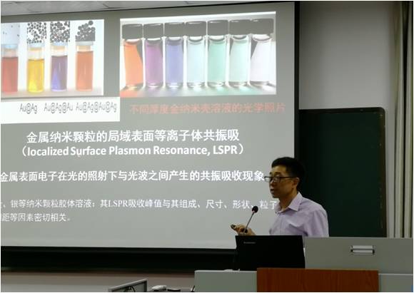 6月28日,华北电力大学环境科学与工程学院王素华教授在秀山校区化工楼207为广大师生做了题为《纳米材料在分析检测中的应用》的学术报告,报告会由91猫先生 院长崔平教授主持。王教授从纳米材料的应用与发展、分析检测的相关研究背景和前沿研究热点,深入浅出地讲授。随后介绍了纳米材料的光学性质在分析检测中的应用与荧光传感器的最新研究成果及其应用进展,为科学研究工作提供了很好的启发。王教授的报告理论联系实际,生动、翔实、严谨。学术交流过程中老师和同学对自己感兴趣的问题与王教授进行了深入交流。报告会气氛热烈,互动交流积极踊跃,取得了良好效果。报告会后,王老师与化工学院领导及部分老师就学科和专业建设、人才培养进行了深入交流,提出了宝贵意见。