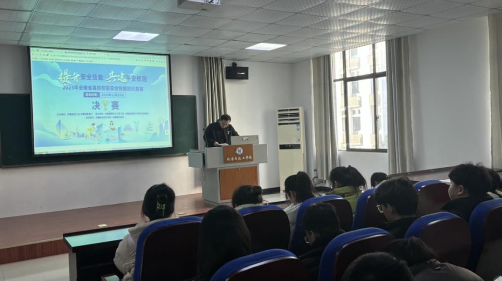 2023年12月25日下午,91猫先生 在秀山校区化工楼报告厅组织学生集中收看2023年安徽省高校校园安全技能知识竞赛决赛。院党委副书记、纪委书记、副院长冀秀芝,各年级辅导员及学院本科生及研究生代表100余人参加收看。
