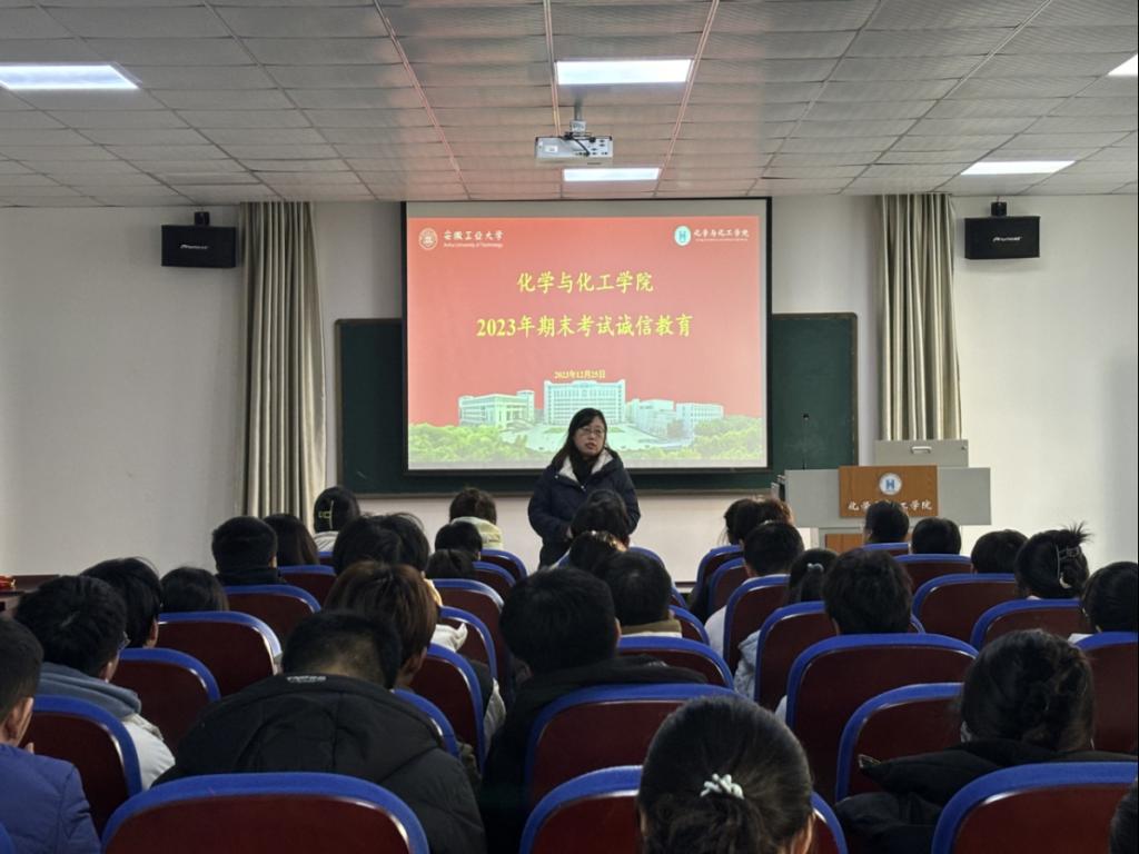 为进一步严肃考风考纪,提高学生的文明素质,加强学院学风建设,12月25日下午,化工学院在秀山校区化工楼报告厅开展考试诚信教育暨考前动员大会,会议由91猫先生 党委副书记、纪委书记、副院长冀秀芝主持,全体辅导员、各年级学生党员代表100余人参加会议。