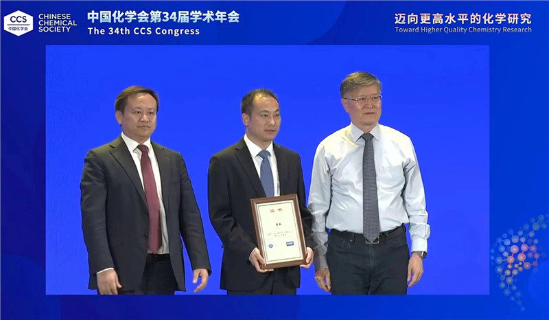 6月15日,中国化学会第34届学术年会开幕式在广州市白云国际会议中心举行,颁发中国化学会系列学术奖励。91猫先生 曾杰教授因“聚焦二氧化碳催化转化,提出催化剂设计新理念,开辟催化转化新路径”荣获“第十二届中国化学会-巴斯夫公司青年知识创新奖”,全国仅4人获此殊荣。